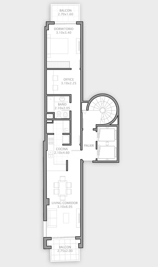 Semipiso frente al río • 1 dormitorio y escritorio • Con cochera • 77m²
